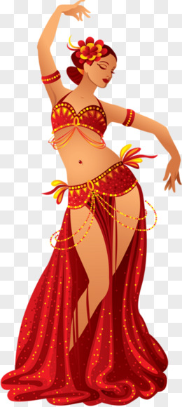 卡通手绘穿汉服美女跳民族舞蹈元素