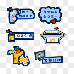 手绘蓝色系软萌可爱小装饰素材