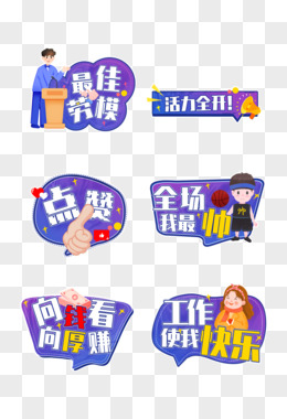 手绘六一儿童节贴纸套图之六一快乐免抠元素
