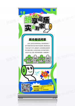 简约卡通潮流风多巴胺纸巾产品地推套图物料易拉宝