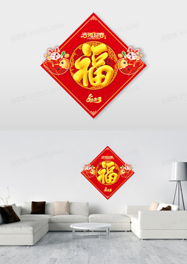 2023红色卡通可爱兔年对联福字门神兔子新年装饰