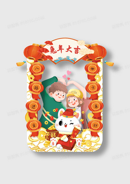 卡通可爱兔子手拿兔年大吉对联素材元素