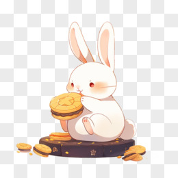 卡通手绘可爱不同月份兔兔场景系列之九月拿着月饼元素