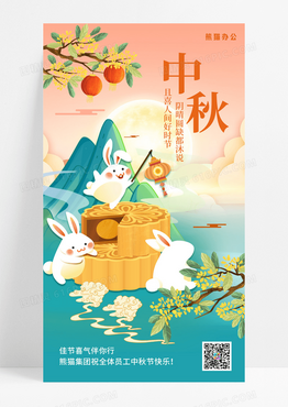 手绘水彩风卡通兔子拿兔子灯插画元素