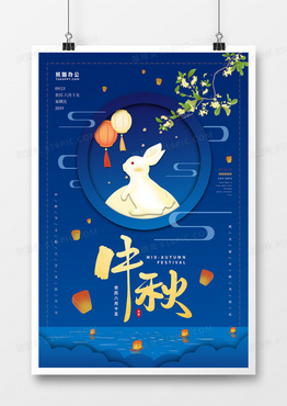 创意卡通剪纸风中秋吃月饼的兔子元素