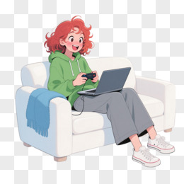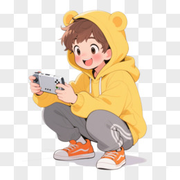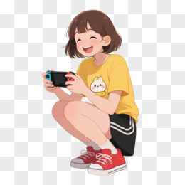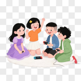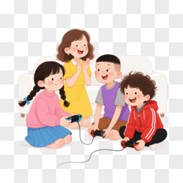 卡通手绘插画风格玩游戏免抠元素