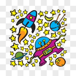 卡通黄色五角星太空