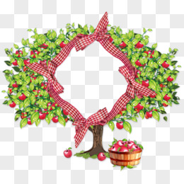苹果树木桶卡通格子相框