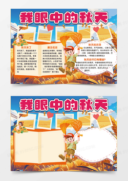 卡通插画我眼中的秋天相片手绘蓝天手抄报