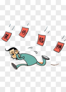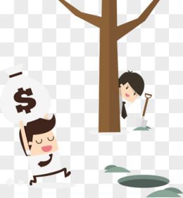 卡通手绘创意人物坠入金钱陷阱中免抠元素