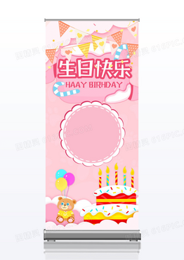 卡通手绘免抠生日贴纸之生日快乐小旗素材