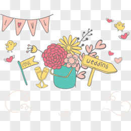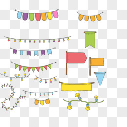 手绘免抠生日手账贴纸装饰元素之生日旗子素材