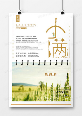 简约扁平绿色创意日历卡通小清新中国二十四节气小满海报