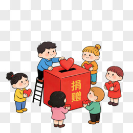 卡通小孩排队拿着爱心放入捐赠箱免抠元素