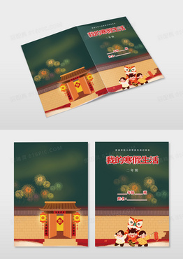 卡通小孩放鞭炮手绘我的寒假生活封面设计寒假作业寒假作业封面