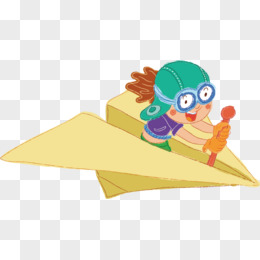 卡通纸飞机上的小孩