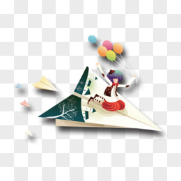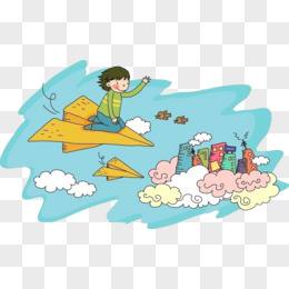 可爱卡通纸飞机上的小孩