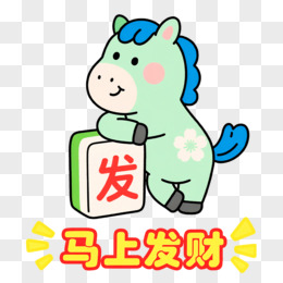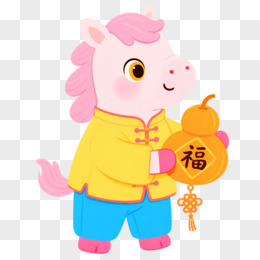 卡通一个小马拿着发财对联免抠元素
