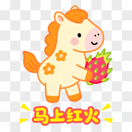 卡通一个小马抱着大柿子免抠元素