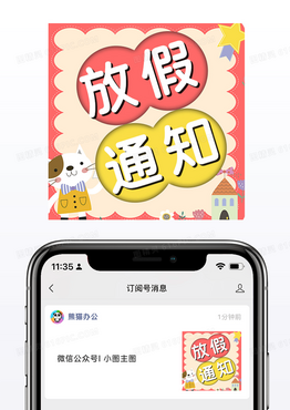 红黄欢快卡通寒假放假通知公众号小图