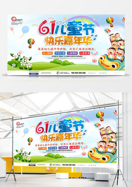 简约卡通小清新六一儿童节户外展板设计