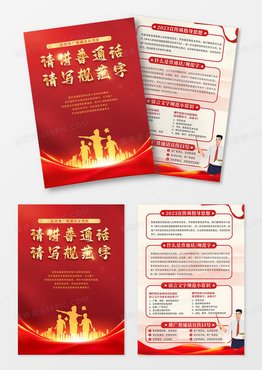 红金简洁请讲普通话请写规范字普通话宣传周折页宣传单