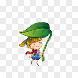 卡通手绘小女孩坐在树叶上捡树叶免抠元素