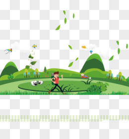 卡通手绘免抠小男孩坐在树叶上免抠元素