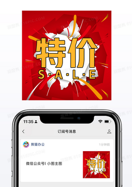 撕裂红色创意卡通促销特价消息微信公众号小图