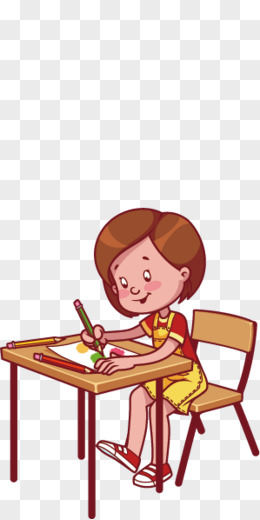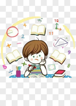 卡通小男孩认真写作业奋斗的场景免抠素材