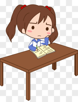 手绘卡通女孩认真学习免抠素材