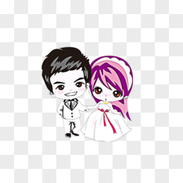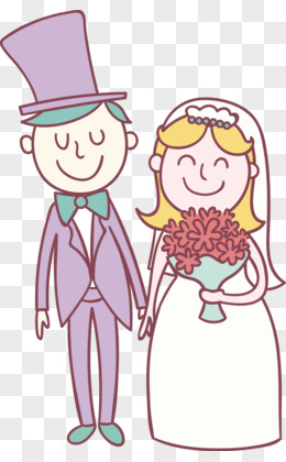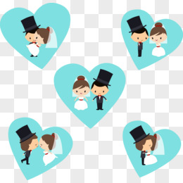 卡通穿白色西服的新郎和蓝色婚纱的新娘免抠元素