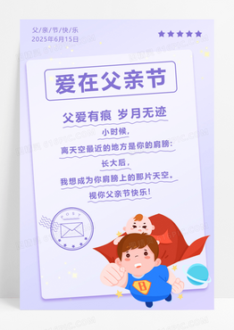 紫色简约小清新卡通父亲节温馨信纸祝福父亲节贺卡