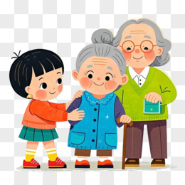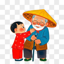 卡通手绘男孩帮老人提篮子免抠元素
