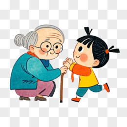 卡通手绘女孩给老人让座免抠元素