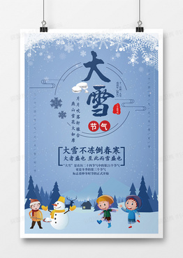 下雪大雪小雪节气女孩弹吉他手绘卡通元素