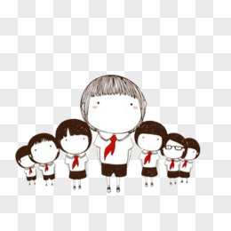 卡通手绘小朋友一起打扫教室场景免抠元素