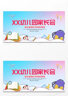 蓝天白云卡通绘画学生幼儿园家长会展板设计