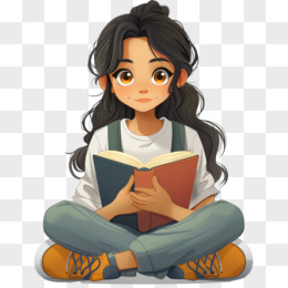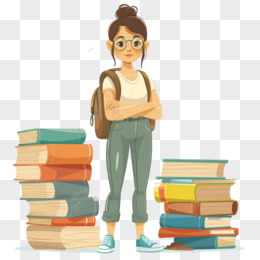 卡通一个女学生抱着书在书堆里看书免抠元素
