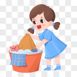 一组卡通小女孩完成独立劳动课程套图之整理与收纳元素