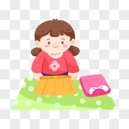 一组手绘卡通中小学劳动课程插画套图之叠被子免抠元素