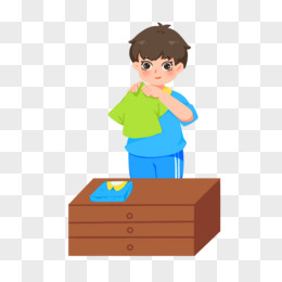一组卡通小男孩完成独立劳动课程套图之晾晒衣服素材