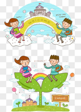 卡通四个背书包穿着校服的学生走路上学免抠元素
