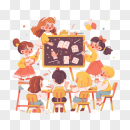 卡通手绘老师教室里讲课上课教育课堂元素