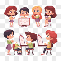 卡通手绘小朋友们一起上课学习元素
