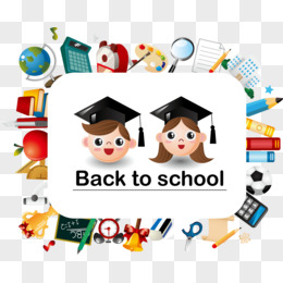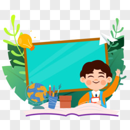卡通手绘学生和黑板免抠边框素材