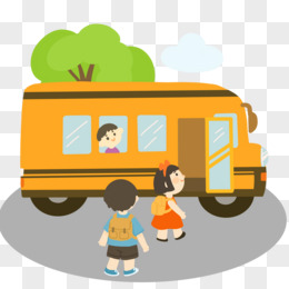 卡通手绘学生上校车元素