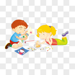 卡通手绘男孩女孩一起看书学习免抠元素