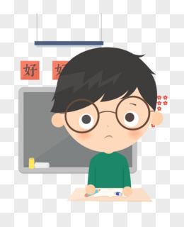 卡通手绘戴眼镜的男孩举牌免抠元素
