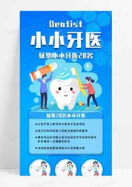 卡通蓝色小小牙医小牙医牙齿营销手机长图